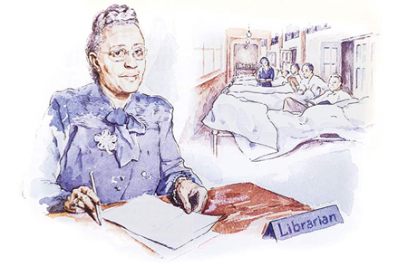 Convinced of the benefits of reading, she developed methods of accompanying patients through books for some 30 years as head of the library at the Veterans’ Hospital in Tuskegee, Alabama. She was particularly involved with survivors of the First World War, people suffering from depression and blind people by learning Braille.